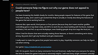 Recently, I've received a whole lot of great feedback regarding what we've done wrong about our game. There is so much that we did not realize until someone points it out for you. I'm extremely lucky...